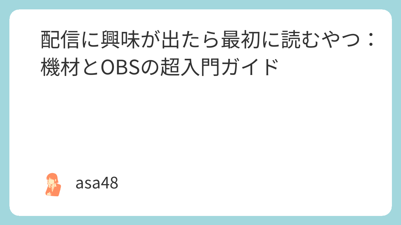 「初心者の配信テスト:OBSでマイク音を整えるまで【720p】」) - サムネ:文字は6語以内、コントラスト強め。なければ静止画でOK